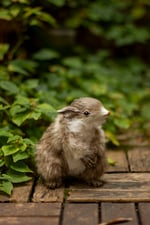Each doll stands 12,5cm (4,9 inches) aprox. tall and 11cm (4,3 inches) wide. Their head, hands and feet are 3D printed in resin and attatched to an inner articulated plastic armature that allows poseability. Body is hand sewn using synthetic fur fabric (vegan friendly) and it's weighted on the bottom for balancing.