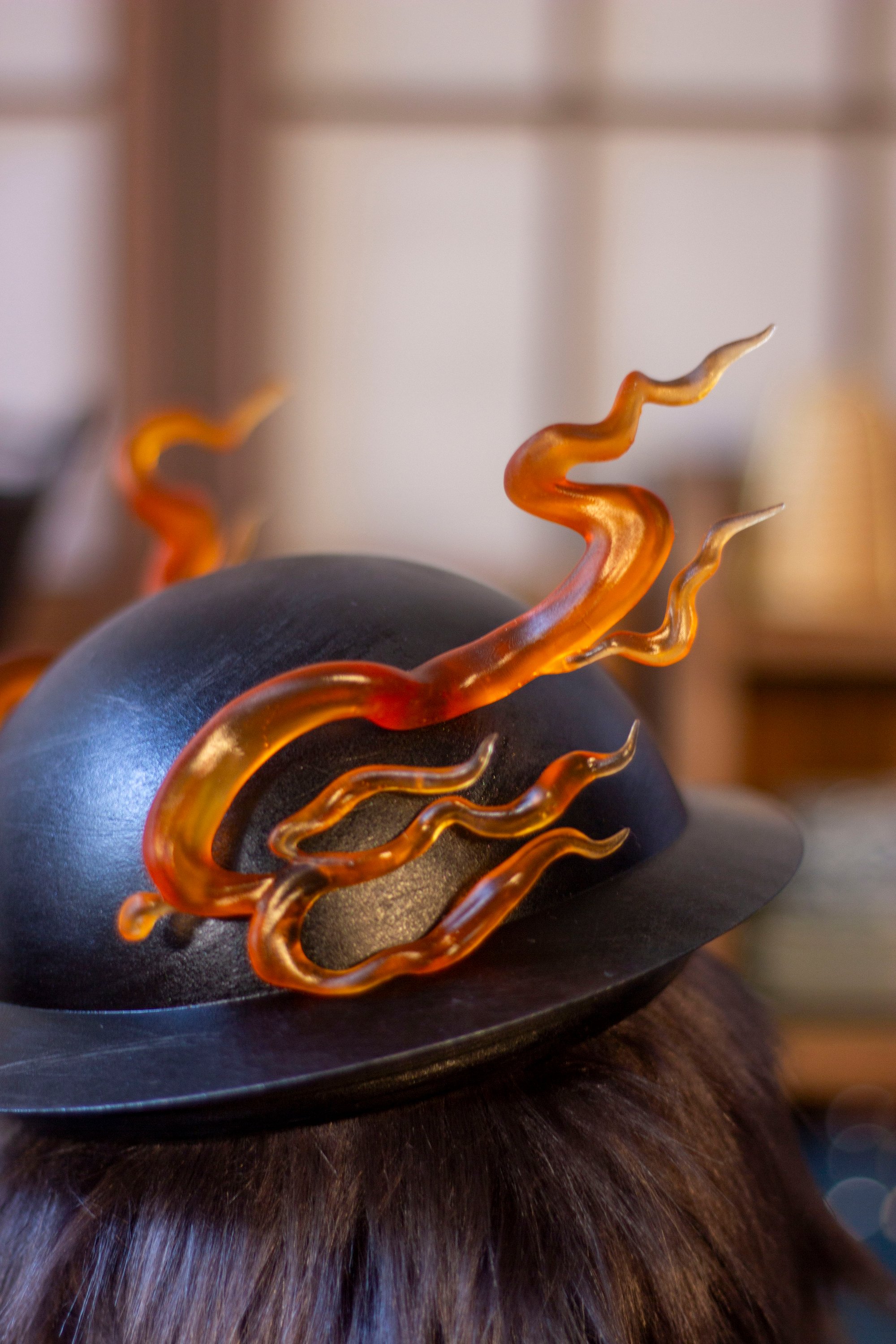 The head, limbs and flames are 3D printed and painted with acrylics.